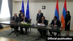 Հայաստանի Հանրապետության անունից համաձայնագիրը նախաստորագրել են գլխավոր բանակցող, արտաքին գործերի նախարարի տեղակալ Կարեն Նազարյանը, ինչպես նաև առևտրական հարցերով բանակցող, տնտեսական զարգացման և ներդրումների նախարարի առաջին տեղակալ Գարեգին Մելքոնյանը: Եվրոպական միության անունից նախաստորագրել են գլխավոր բանակցող, Եվրոպական արտաքին գործողությունների ծառայության Արևելյան գործընկերության, Ռուսաստանի, Կենտրոնական Ասիայի, տարածաշրջանային համագործակցության և ԵԱՀԿ հարցերով տնօրեն Լյուկ Դևինը, ինչպես նաև ԵՄ կողմի առևտրի հարցերով բանակցող, Եվրոպական հանձնաժողովի առևտրի գլխավոր տնօրինության ստորաբաժանման ղեկավար Պետրոս Սուրմելիսը։