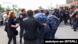 Երևանի Արցախի փողոցում ոստիկանությունը բերման է ենթարկում վարչապետ Սերժ Սարգսյանի իշխանության դեմ բողոքի քայլերթ իրականացնող ցուցարարների նկատմամբ: