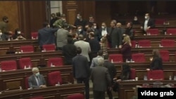 Նիստը վարող ԱԺ փոխնախագահ Ալեն Սիմոնյանը դահլիճ հրավիրեց անվտանգության աշխատակիցներին: