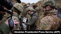 «Դոնբաս կատարած աշխատանքային այցի ընթացքում Վլադիմիր Զելենսկին ացելել է պաշտպանության առաջնագծում գտնվող դիրքեր, որտեղ արձանագրվել են հրադադարի խախտման առավել մեծ թվով դեպքեր», - նշված է Ուկրաինայի նախագահի մամուլի ծառայության հաղորդագրության մեջ։