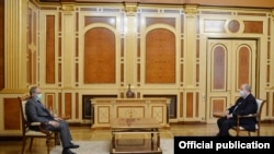Նախագահ Արմեն Սարգսյանն ու վարչապետի պաշտոնակատար Նիկոլ Փաշինյանն այսօր աշխատանքային հանդիպում են ունեցել, անդրադարձել հայ-ադրբեջանական սահմանին ստեղծված իրավիճակին, Հայաստանի ինքնիշխան տարածք ներխուժած ադրբեջանական զինված ուժերի ստորաբաժանումներին դուրս մղելու, Հայաստանի տարածքային ամբողջականության դեմ ոտնձգությունները բացառելու ուղղությամբ իրականացվող գործողությունների ընթացքին: