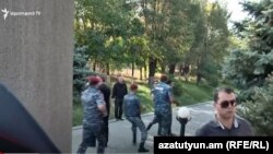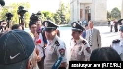 Հարցազրուցն ընդհատեցին անվտանգության աշխատակիցները, լրագրողներին հորդորեցին անցնել իրենց համար առաձնացված անկյուն, իսկ զոհերից մեկի հորը ուժով հեռացրին պանթեոնի տարածքից: