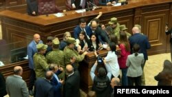 Ալեն Սիմոնյանը դահլիճ հրավիրեց անվտանգության աշխատակիցներին, վերջիններս փորձեցին Թովմասյանին հեռացնել ամբիոնից։ Քաշքշոցով մի խումբ պատգամավորներ դուրս բերվեցին դահլիճից։
