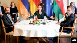 Ավելի վաղ Հայաստանի ԱԳ նախարար Արարատ Միրզոյանի, Գերմանիայի ԱԳ նախարար Անալենա Բերբոքի և Ադրբեջանի ԱԳ նախարար Ջեյհուն Բայրամովի եռակողմ հանդիման ընթացքում, ՀՀ ԱԳՆ լրատվական վարչության փոխանցմամբ, քննարկվել են Հայաստանի և Ադրբեջանի միջև հարաբերությունների կարգավորման գործընթացի հարցեր: