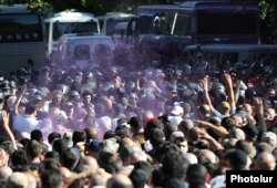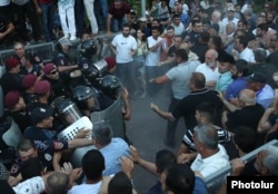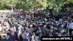 Ցուցարարները պնդում են, թե իրենց շարքերում սադրիչներ կան, ովքեր «շշեր են նետում իրավապահների ուղղությամբ»։