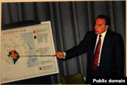 Խոստացված հայտարարությունը հնչում է Ջորջթաունի համալսարանում։ Իր մտադրություններն ու սեղանին դրված տարբերակն առավել հասկանալի դարձնելու համար Հեյդար Ալիևն ի ցույց է դրել հատուկ քարտեզ, որի վրա Լեռնային Ղարաբաղը ներկված էր մեկ գույնով, շրջակա տարածքները ՝այլ։ Ղարաբաղի հարակից շրջանների ու Շուշիի մասին խոսելիս Ալիևը նշել է՝ դրանք ադրբեջանական հողեր են, Ղարաբաղի դեպքում ասել՝ կարգավիճակը կորոշվի երկրորդ փուլում։ Ադրբեջանի նախագահի այդ՝ 1997 թվականի ելույթը հրապարակված է նրա պաշտոնական կայքում.