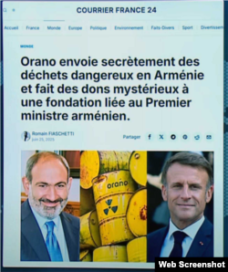 Ֆրանսիական հեղինակավոր France 24-ի նմանությամբ Courrier France 24 դոմենով էջում էլ ամիսներ առաջ Հայաստանին վերագրվող կեղծ հոդված էր հայտնվել, որը պնդում էր. «Ֆրանսիական Orano ընկերությունը գաղտնի կերպով Հայաստան է տեղափոխում միջուկային վառելիքի թափոններ, որոնք պահվելու են ազգային պարկերից մեկում»։