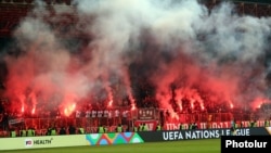 Հայաստան-Ֆարերյան կղզիներ հանդիպումն ուղեկցվել էր երկրպագուների խմբերի ակցիաներով, ովքեր պահանջում էին Հայաստանի ֆուտբոլի ֆեդերացիայի ղեկավարության հրաժարականը։